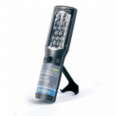 Rechargeable and cordless. Hook/stand feature for multi-positional use. Compact design. Virtually unbreakable polycarbonate lens. 15 High intensity LEDs. Wide angle light output. Integral belt clip.