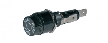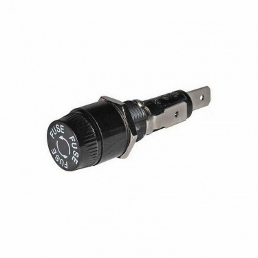 Panel mount fuseholder for 32mm fuses up to 35 amp blow rating, for mounting into 13mm diameter hole. Bayonet retaining cap for fuse. 6.3mm blade terminal cable connections. Length 60mm.